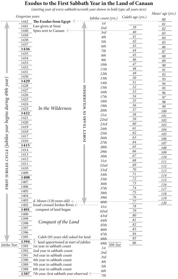 When the 480-year Masoretic figure is replaced by the 440-year figure from the Septuagint, that moves the date for the Exodus forward from 1,482 BCE to 1,442 BCE, making events surrounding the Exodus synchronize perfectly with the Sabbath-Jubilee calendar calculated from the Bible and documented history, dates which are verified by multiple chronological crosschecks. Equally important, the 440-year figure yields a timeline that agrees with the Masoretic verses describing the duration of Israel’s conquest of Canaan.